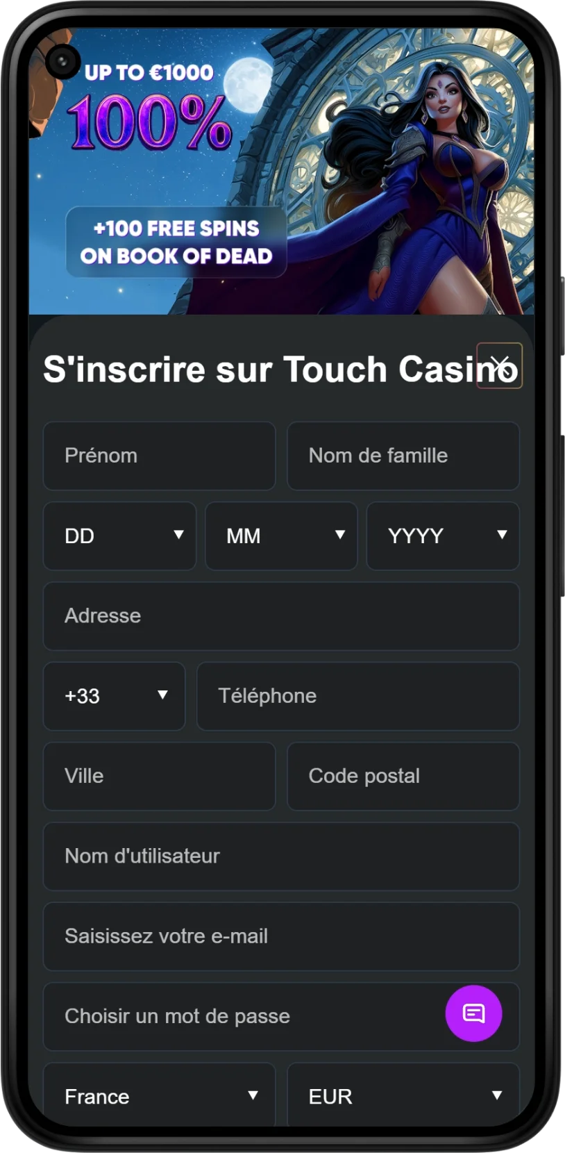 Enregistrement d’un compte et dépôt via l’application Touch Casino